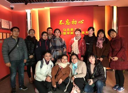 老师们参观了经过复原的阅览室、书库、教室,以及新潮杂志社、员工大教室和李大钊等先烈工作过的办公室场所,通过文字、图片介绍和当时的物品陈列,细致生动地了解了陈独秀、蔡元培、毛泽东、李大钊等先驱在红楼工作时的情景,感受到了新文化运动和五四时期师生浓厚的求学和救国热情。走过一个个房间,犹如置身于百年前的北大,置身于五四运动先驱们学习、生活和求索的环境中。重温那段风云激荡的历史,缅怀革命先烈的丰功伟绩,大家深刻地感受了先烈们在五四运动、新文化运动时期动荡坎坷而满怀激情的峥嵘岁月,激发了大家的爱国热情,更加深刻认识到身为高校教育工作者和当代共产党人的历史使命感与责任感。