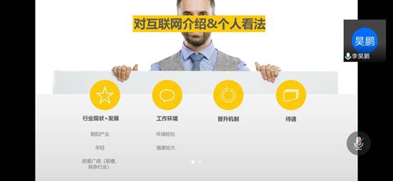 第四场互联网行业专题讲座邀请到了李昊鹏、闫施两位员工和今年的应届毕业生徐孝杰为大家分享。