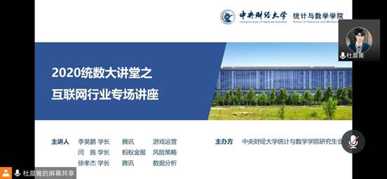 李昊鹏,2015级应用统计专业硕士研究生,现就职于腾讯公司游戏运营岗。“互联网行业是当前的朝阳行业,作为年轻人,应该去闯一闯”,李昊鹏员工从自己的求学经历、实习经历、目前的工作情况三个方面展开讲述。他提到,对于统计和数学类专业,在互联网行业可以选择的岗位很多,譬如数据分析岗、数据挖掘岗、产品甚至后台,大家都可以积极去投递。他强调,我们还年轻,互联网也很年轻,总会有一些有趣的事情发生。对于求职过程中的笔试和面试,学长建议大家要在平时注意培养自己的沟通能力、情绪管理能力、学习能力以及思考能力。在面试过程中,发生思想的碰撞,心平气和地说服别人才是能力的体现。在平时就要多学习、多思考,不要将自己的时间浪费在一些没有意义的游戏上。