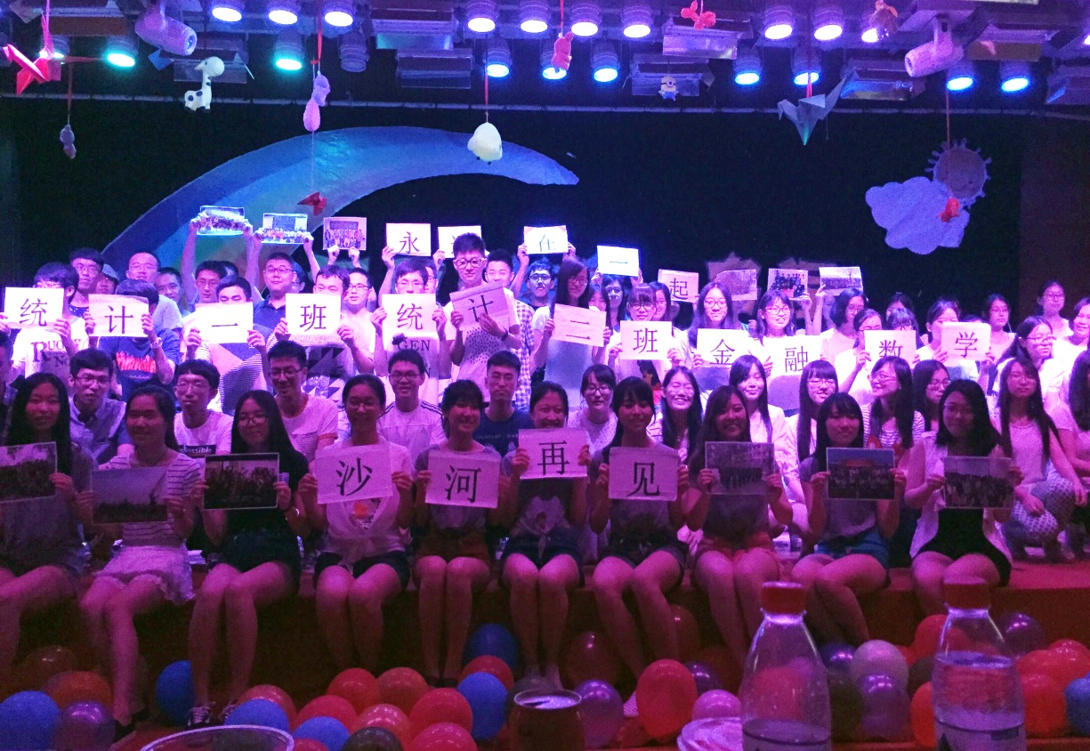 即将离开沙河的12级同学带来合唱《想把我唱给你听》,将毕业生对沙河的留恋轻轻诉说,“统计一班统计二班金融数学班永远在一起”的标语,更激发了毕业生浓浓的离别之情;整场晚会以大合唱《朋友》收尾,毕业生们走上金色大厅的舞台,与相处了四年的同学、朋友、伙伴们齐声高唱“一句话,一辈子,一生情,一杯酒”,即将踏上新旅程的他们,都将记住这段刻骨铭心的友谊。大学中满满的感动、青涩的过往、激情伤感等淋漓尽致在眼前浮现,勾起了毕业生们的离别情愫,所有旋律都汇成青春的回忆,成为奋斗前行的动力。