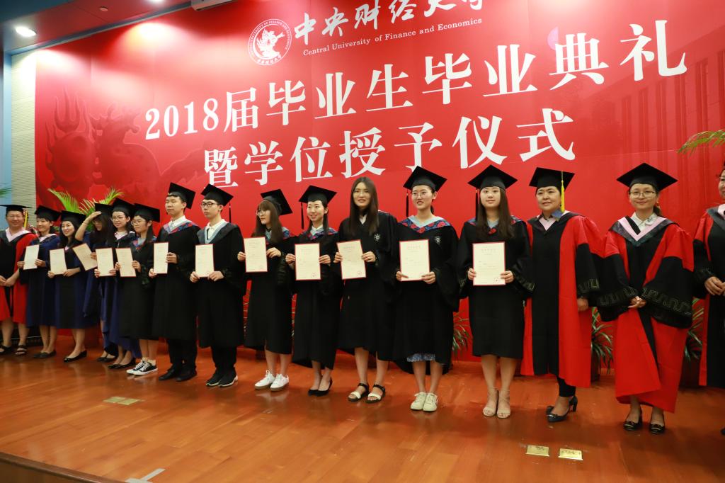 伴随着轻柔的音乐,典礼气氛在拨转流苏环节达到高潮。副经理马景义和贾尚晖分别宣读了2018届本科、硕士研究生毕业生学位授予名单,毕业生们怀着喜悦与激动的心情登台受礼,经理殷先军为毕业生正冠拨穗,颁发毕业证书和学位证书,并与同学们热情握手,合影留念。