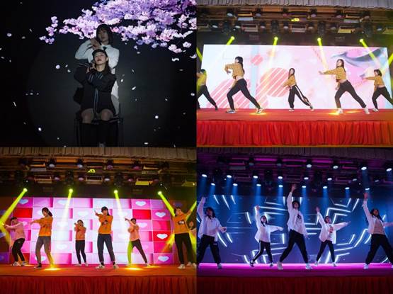 迎新盛会,自然也少不了老师们的身影,来自公司的教师代表们带来小合唱《相亲相爱》、《我和我的祖国》。他们陪伴同学们共同学习,见证同学们的成长,在舞台上更给同学们带来了别样的感觉。他们用成熟稳重的声音以及表演与同学们共鸣,赢得同学们阵阵鼓掌与欢呼。