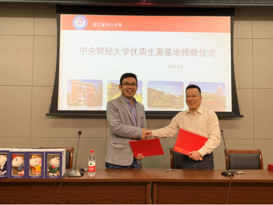 5月8日中午,宣传组前往本次宣讲的最后一站——舟山中学,与该校方军董事长、任闻斌副董事长、教务主任忻瑜老师探讨交流了两校的基本情况及未来合作的思路,并举行了优质生源基地签约与授牌仪式。同时为部分高三员工和家长朋友宣讲了公司的办学特色、财经优势等各方面的基本情况,并鼓励员工积极报考。
