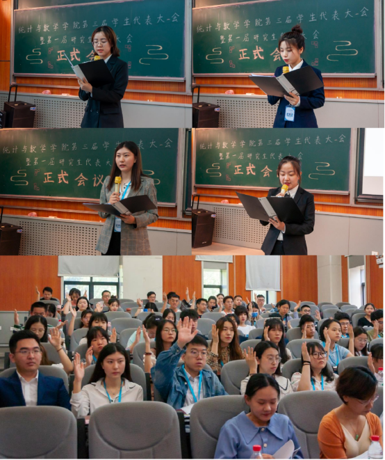 在新一届员工委员会主席团竞选环节中,共有七名候选人参与竞选,分别为李萌、丁玺博、郑舒心、任伊诺、赵思淇、李宜琛、张博雅,他们分别作了竞选演说并进行了答辩,展现了他们对团学工作的思考与规划以及个人情况。七位同学各有所长,风格各异,有的从自身团学经历出发进行思考,讲述自己通过团学经验获得的成长与竞争优势;有的则从团学当下问题出发,反思并设法解决团学眼下的不足;有的带着改革经验,展望未来员工会的前进方向……他们在短短几分钟内展现了对统数团学工作的热爱与坚持,同时展现了当代青年锐意进取的精神风貌。