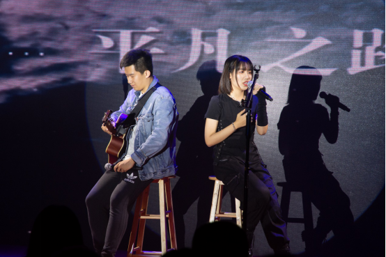 伴随着同学们的欢呼声而来的,是歌曲《爱你3000》的倾情演唱。灯光下,歌声带动着观众们的情绪,吐露着对生活的心声,诠释着对生命的态度。不仅是台上的他们,台下的听众们也不禁陷入进了这场音乐盛宴之中。