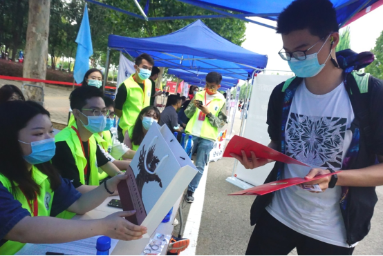 早7时许,研究新生陆续前来报到。志愿者们有序开展信息确认、注册、分发钥匙及校园卡等各项工作。在迎新现场,学长学姐们帮助新生们搬运行李、指引路线、介绍校园情况、答疑解惑,迎新工作井然有序地进行着。志愿者们亲切热情的态度和贴心周到的服务消除了新生初来乍到的紧张感和陌生感,给新生们留下温暖的中财初印象。