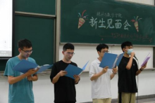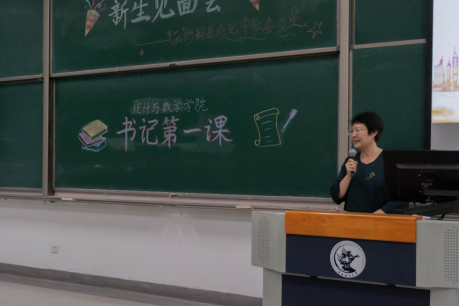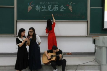 随着王秦煜老师宣布新生见面会开始,歌声与掌声便不绝的在阶梯教室回响。新生们以宿舍为单位,以多彩的表演形式,以积极昂扬的姿态,展现了统数新生的青春风采。“假如我年少有为知进退……”,一首《年少有为》作为开场曲目赢得了全场的掌声。从旋律动人的吉他弹唱到热情活泼的广场舞《自由飞翔》;从节奏感十足的杯子舞到清唱《踏山河》点燃全场;从声情并茂的诗朗诵到笑点连连,博得阵阵掌声的自编自导的小品……舞台上,他们青春洋溢,他们能歌善舞,他们恣意绽放。让我们看到了来自五湖四海,正踌躇满志追逐青春梦想,有缘相聚于此的统数新生的青春面貌。伴着舍友们合唱《夜空中最亮的星》的动听旋律,李艳同学转身提笔在黑板上书写下了对全院新生最美好的期待——“我们都是夜空中最亮的星”。一笔一划,这同时也书写着老师们对新生的祝愿,在中财统数这一温暖的大家庭中发光发热,不断成长,成为照亮黑夜的那颗最亮的星星。
