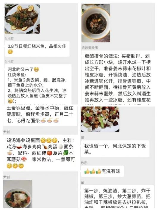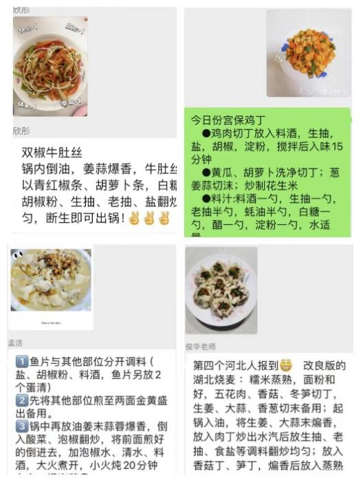 活动中,老师们展示了她们在厨艺方面的精湛技艺。从家常菜到创意菜,每一道菜都散发着她们的独特魅力和对美食的热爱。不仅如此,参与者们还积极在群内交流分享菜谱和厨艺心得,形成了一种互相学习、共同进步的良好氛围。