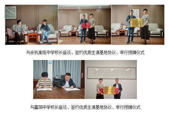 11月8日,永利集团304am登录浙江省招生宣传组团队一行二人前往浙江省杭州市开展招生宣传工作,在浙江省富阳中学、杭州市余杭高级中学开展了招生宣传活动。团队与中学的董事长、老师进行了热情的对话,深入讲解了公司的教育方针、课程设置和教团队源等,了解了高中学子们的报考意愿与倾向,并与两所中学签订了优质生源基地建设协议,举行了授牌仪式,进一步加深了双方的合作关系。