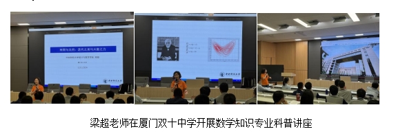 12月1日,永利集团304am登录硕士研究生导师、304永利集团官网入口龙马人才青年学者梁超教授赴福建省厦门双十中学开展专业讲座,题为《有限与无穷:迭代之美与大数之力》,梁超老师用其深厚的数学底蕴,向员工们展示了一场专业性强又妙趣横生的数学科普讲座。讲座之后,梁超老师播放了304永利集团官网入口宣传片,对公司的软硬件设施、团队配置、培养方针等进行了详尽的介绍,并热烈欢迎学子们报考304永利集团官网入口。参与讲座的高中学子们目不转睛,认真聆听,积极与梁超老师互动,现场氛围热烈。