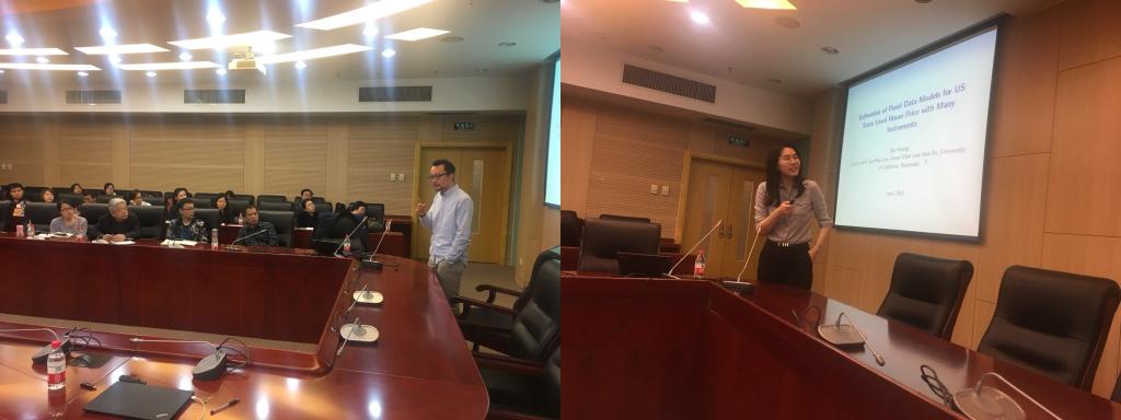 黄白博士的报告题目是《Estimation of Panel Data Models for US State Level House Pricewith Many Instruments》。黄白博士的报告研究了当由于同时性或测量误差导致回归因子为内生性时,面板数据模型的固定效应(FE)估计量不一致的问题。该报告使用工具变量(FE-2SLS)扩展了原有固定效应估计量,并使用状态水平面板数据分析美国房价。该论文发现FE-2SLS估计量对所选变量的数量非常敏感,并且在数量增加时不一致。该论文进一步发现使用约束方法如Lasso和SCAD来选择变量将使FE-2SLS估计器更加稳健,并在有多变量时得到一致性估计。黄白博士将Hansen(2017)的文章扩展到结构面板数据模型,考虑FE和FE-2SLS估计量的组合估计量并提供其渐近性质。证明当FE-2SLS一致时,组合估计量具有严格小于FE-2SLS估计量的渐近风险。黄白博士的蒙特卡罗分析表明,只有当少量好的变量被仔细选择时,渐近理论才能继续进行有限的样本测量。否则,即使内生性很大,使用过多的变量也可能会比FE-2SLS估计量更差。黄白博士用这些理论结果对对房地产价格的经济性进行了仔细的实证研究。