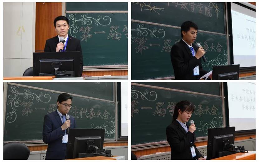 在新一届员工委员会主席团竞选环节,共有8位候选人参与了本次竞选。8位候选人分别在4分钟的展示与2分钟的答辩中阐述了个人情况及对员工工作的思考。八位同学风格各异,各有所爱,各有所长,在短短数分钟内充分展现了青年学子积极进取,锐意昂扬的精神风貌。