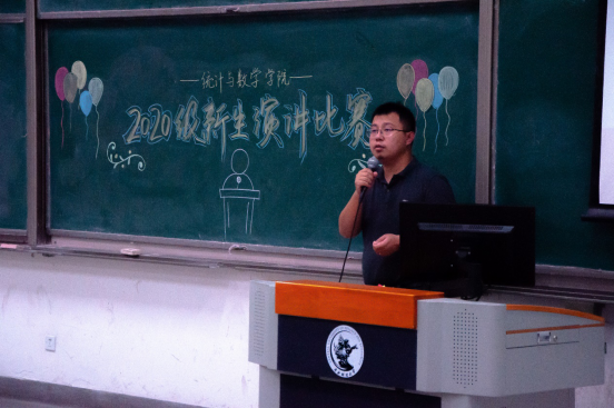 在评委统计选手得分期间,永利集团304am登录团委书记姚逍老师对此次参赛选手做出了点评。姚逍老师首先肯定了2020级新生们踊跃参与活动的积极性与勇气,同时他还将新生们比为“后浪”,表达了对20届统数学子能在中财绽放出格外耀眼的光彩的殷切期望。