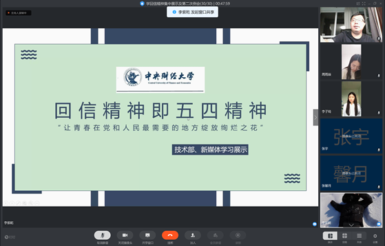 2020年4月5日晚,永利集团304am登录团委员工会骨干以线上学习的方式,分享各组学习习近平总书记回信的成果。公司团委书记姚逍老师、团委员工副书记向苇、副主席陈哲昂、李紫乾、郑俊君、员工会各部门部长以及社团负责人参加了此次集中学习。会议由公司员工会主席杨宇坤主持。