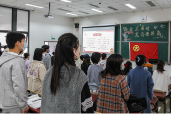 由团委员工副书记杨如悦领誓,全体学员重温入团誓词。誓词铿锵,声音洪亮,红旗灿灿,我心飞扬。面向团旗,团校学员展现了对团的一片拳拳热爱之心。