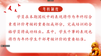主持人向各位同学明确了考核制度,介绍了员工个人成绩的考核标准、“优秀学员”、“优秀团队”荣誉称号的评比方式、团队成绩的考核标准等一系列规定,员工干事的表现将作为年终员工干部考核评价的重要标准。此环节让同学们对本次活动有了更深刻的认识和了解,激励同学们以更加饱满的热情投入到接下来的活动当中。